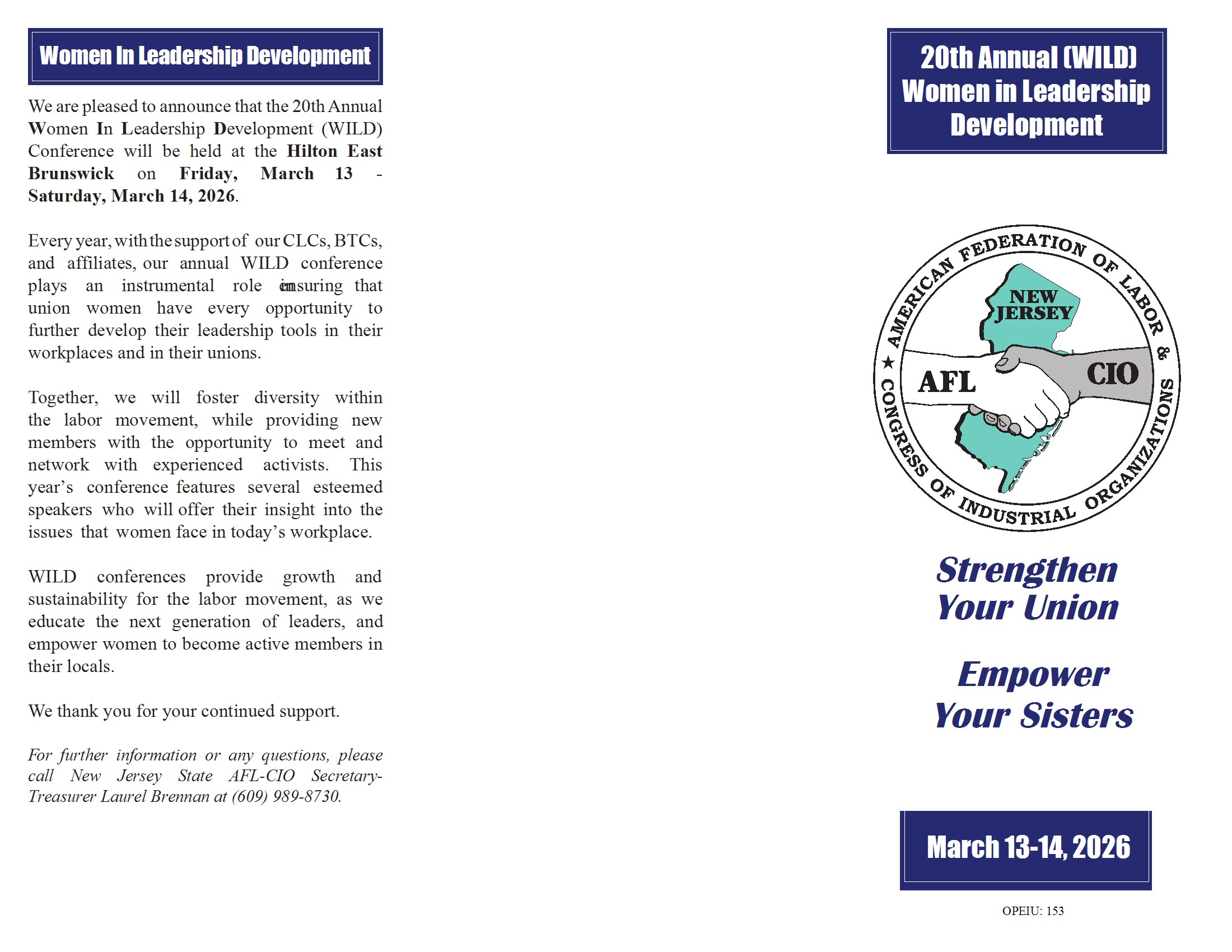 Come join the Women in Leadership Development conference, hosted by the AFL-CIO at the Hilton in East Brunswick!